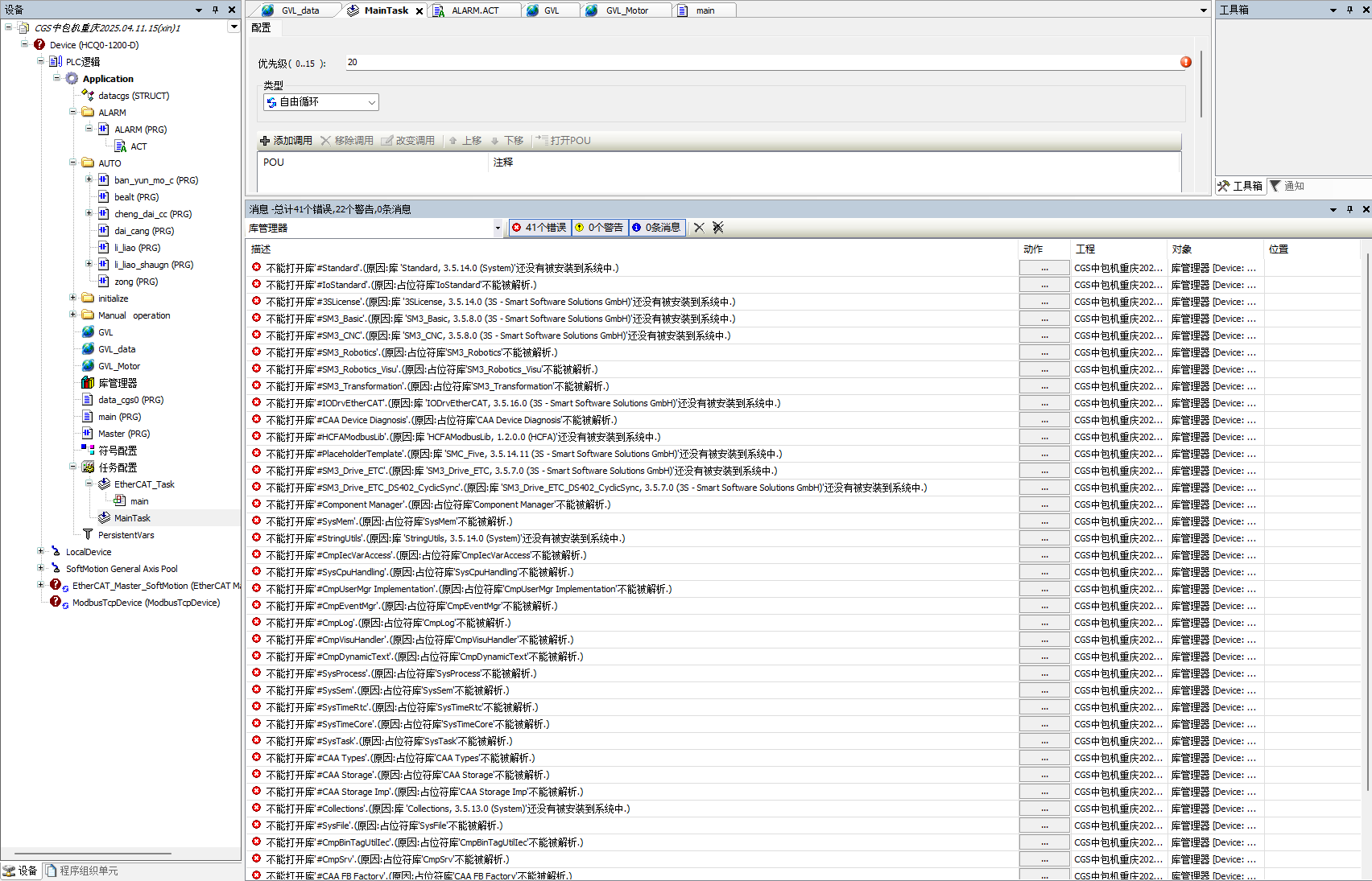 最近接触到CODESYS,下载最新版本V3.5 SP21 Patch 4安装,打开信捷、禾川品牌CODESYS平台的PLC程序,会出现很多错误,主要提示库未安装、占位符不能解析等等,请问这些问题怎么解决??用CODESYS软件打开不同版本的CODESYS程序,也会出现很多错误提示