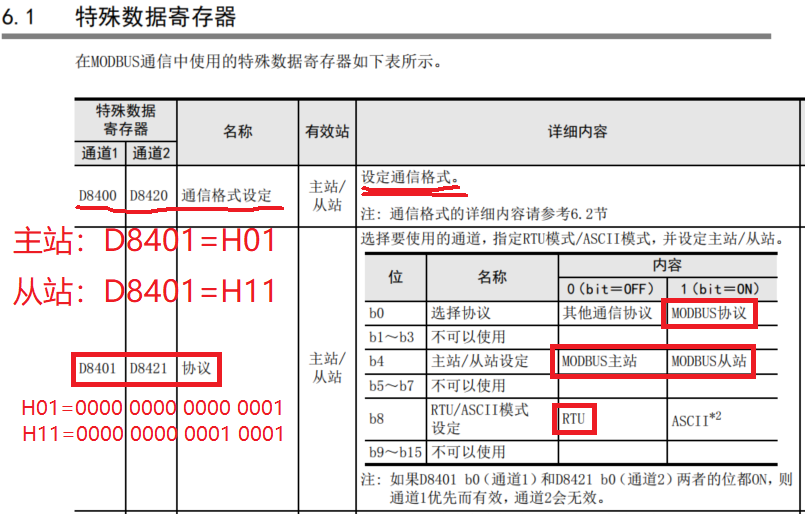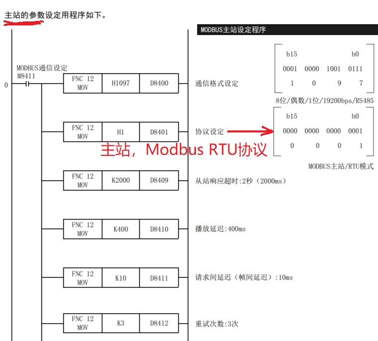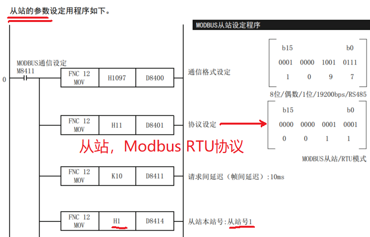 FX3U做从站,资料里说要用M8114触点来设置D8400,为H11,见附件附图,