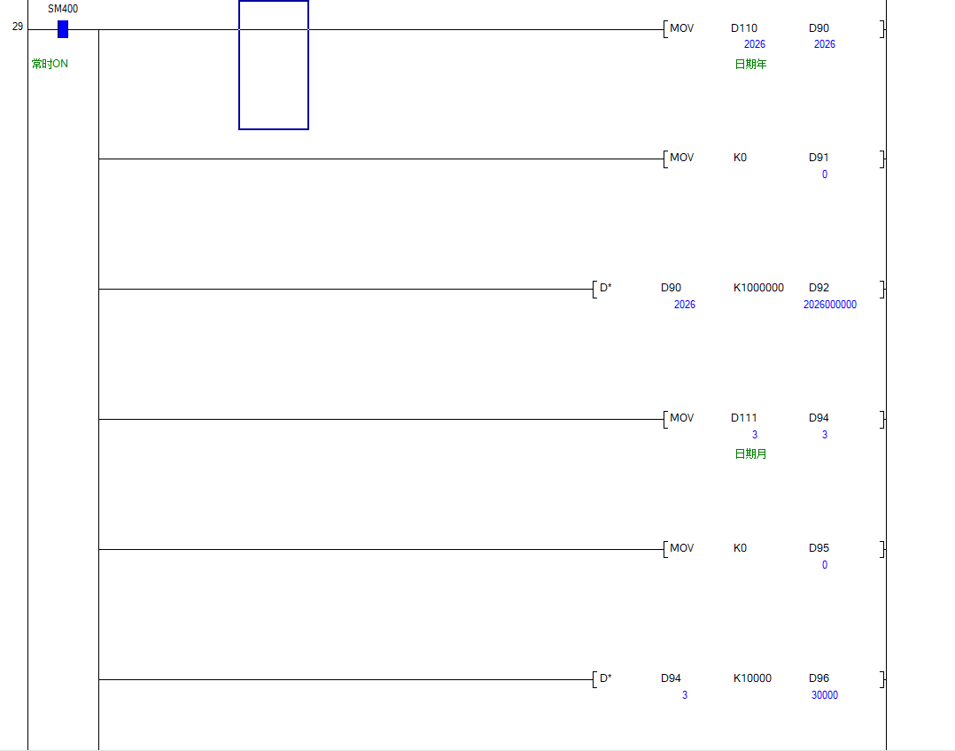 三菱Q系列plc时间传入寄存器显示,求教还有没有更简便方法