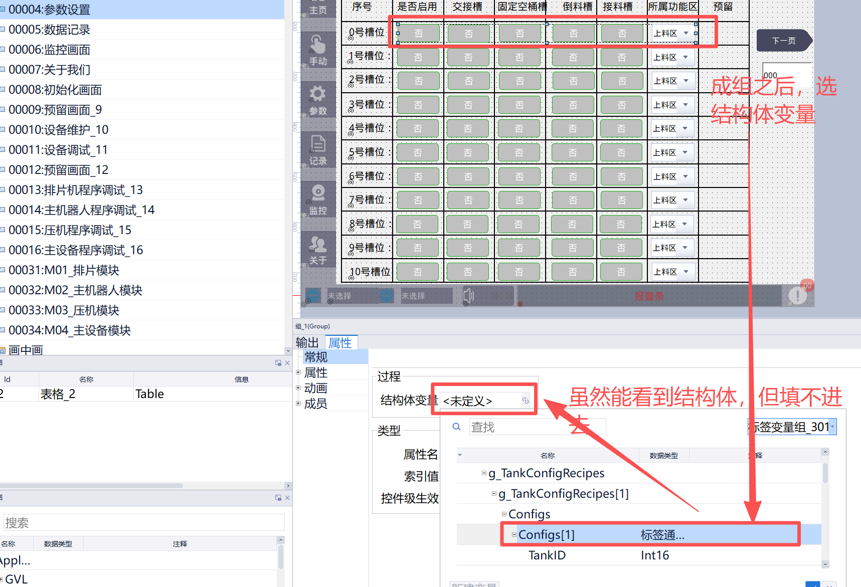 结构体变量添加时候,虽然能看到结构体变量,但是勾选之后,却填不进去。