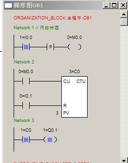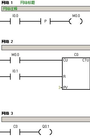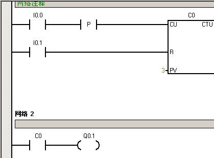 I0.0 3个脉冲后Q0.1长久打开1,需要i0.1输入后才能关闭。