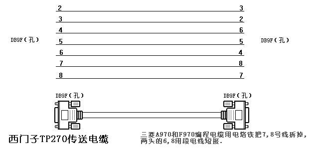 三菱A970和西门子TP270触摸屏编程电缆