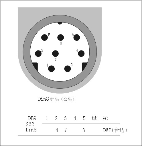9针孔的针脚号在串口端头上有,8针公的这头针脚号的编号如下: