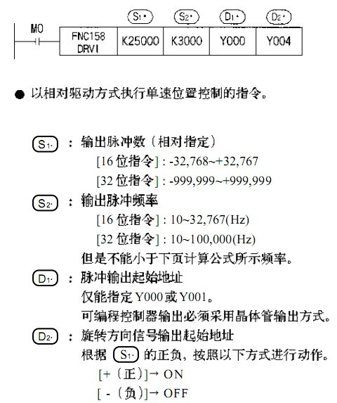 DRVI叫单速,增量驱动方式脉冲输出指令. S1(K200)是输出脉冲个数. 16位指令,-32768------32767,32位指令,-999999-----999999