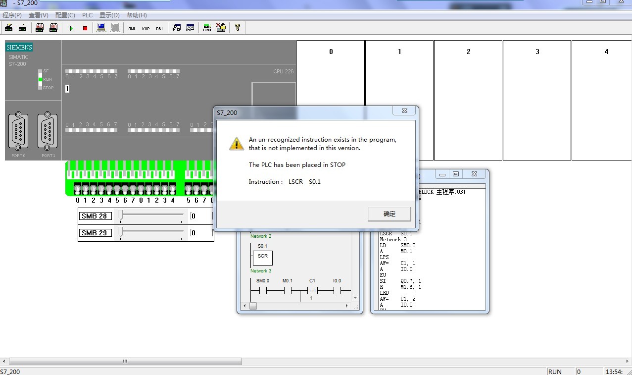 最次说明,S7200的模拟器是不能模拟顺序控制指令的。