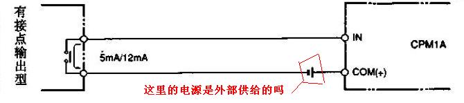 如图。记得三菱的输入接线拿个开关把COM和X接一下就好了,刚学欧姆龙,这个输入那里有个电源啥意思啊,是外部供给的吗?谢谢
