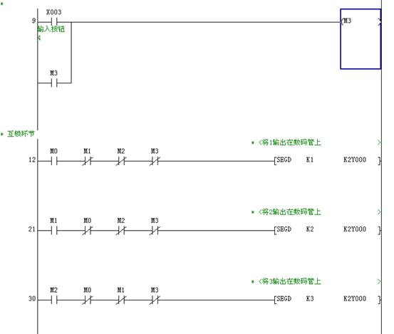 对于输出口,Y00-Y07、 Y10-Y17连接LED,Y20接内部蜂鸣器,其它输出口没有连接.程序中可以作为普通M继电器使