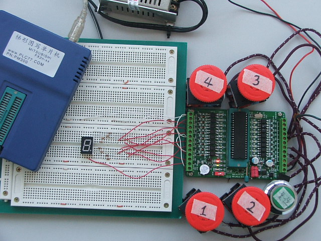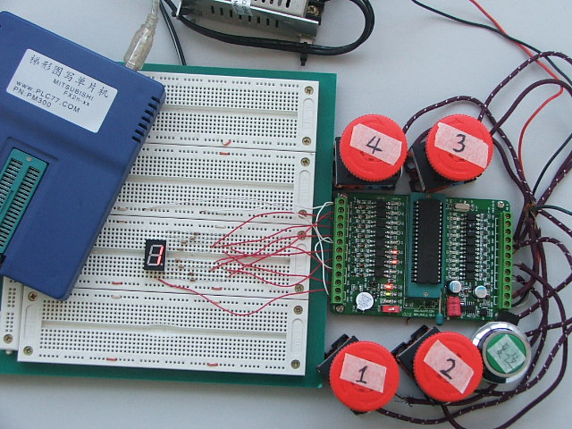 对于输入口,“PLC学习板”的X0-X3连接按键, “DIY PLC L”板的X0-X7连接到输入口,其它输入口没有物理连接.