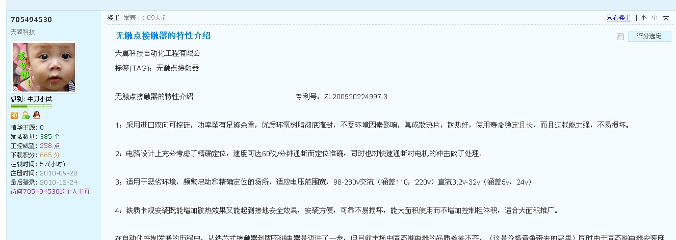 但是很多用的啊 ,有的说用在1.5kw上一年的故障率是0%,厂家也有保证,但电机和线路损坏除外。但是他说得是天翼科技产的(朗风)牌无触点接触器。
