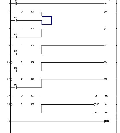 双线圈错误啊,这样的结果只会在第六次全亮,第七次全灭才会有效。使用双线圈就说明你还没懂得编程的思路。输出只出现一起,关键是写好输出的条件。不过呢有时候巧妙地利用双线圈可以简化程序