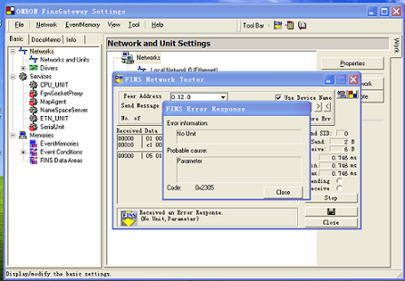 我用Finsgetway 软件测试工控机与PLC网络通讯,但报了一个警:no unit(没单元)!!