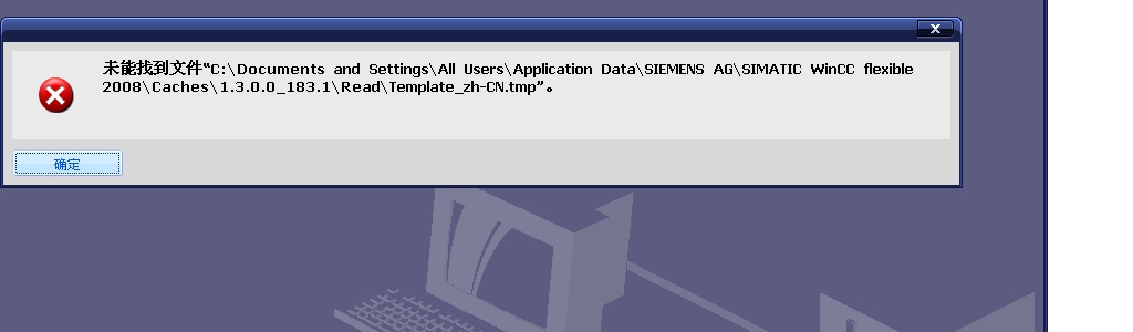 1.出现问题如下:未找到文件c:\Documents and settings\AII Users\ApplicationData\SIMENS AG\SIMATIC WinCC flexible 2008\Caches\1.3.0.0_183.1\Read\Template_zh-CN.TMP