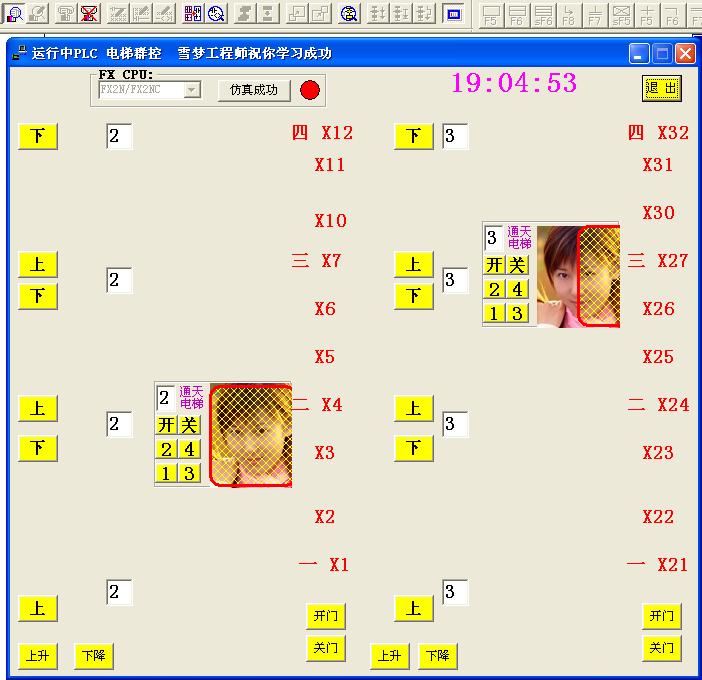 第二步启动三菱PLC模拟仿真学习 电梯群控,点击仿真按扭进行。