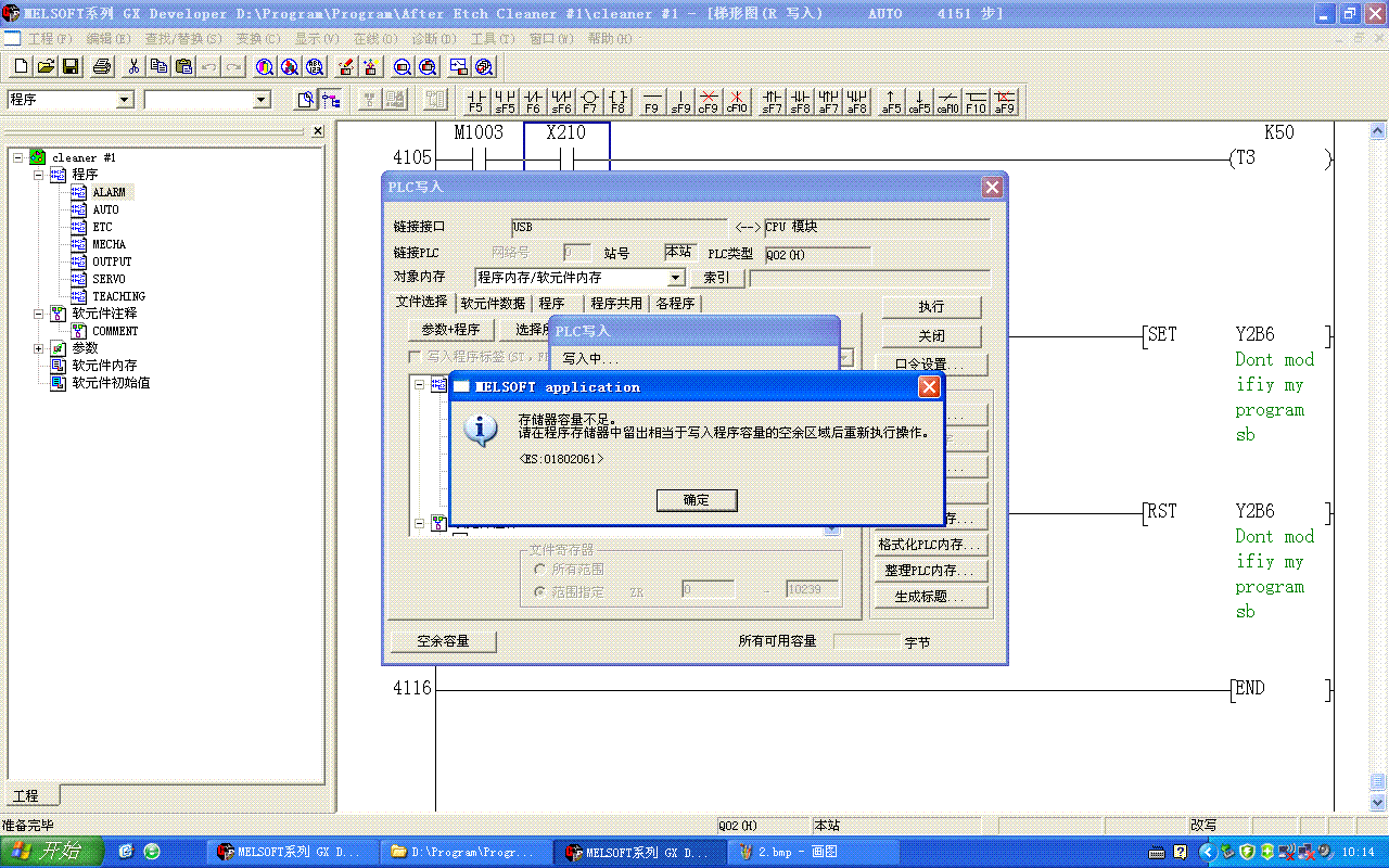 三菱PLC Q02H CPU 运行中 程序写入问题请教!