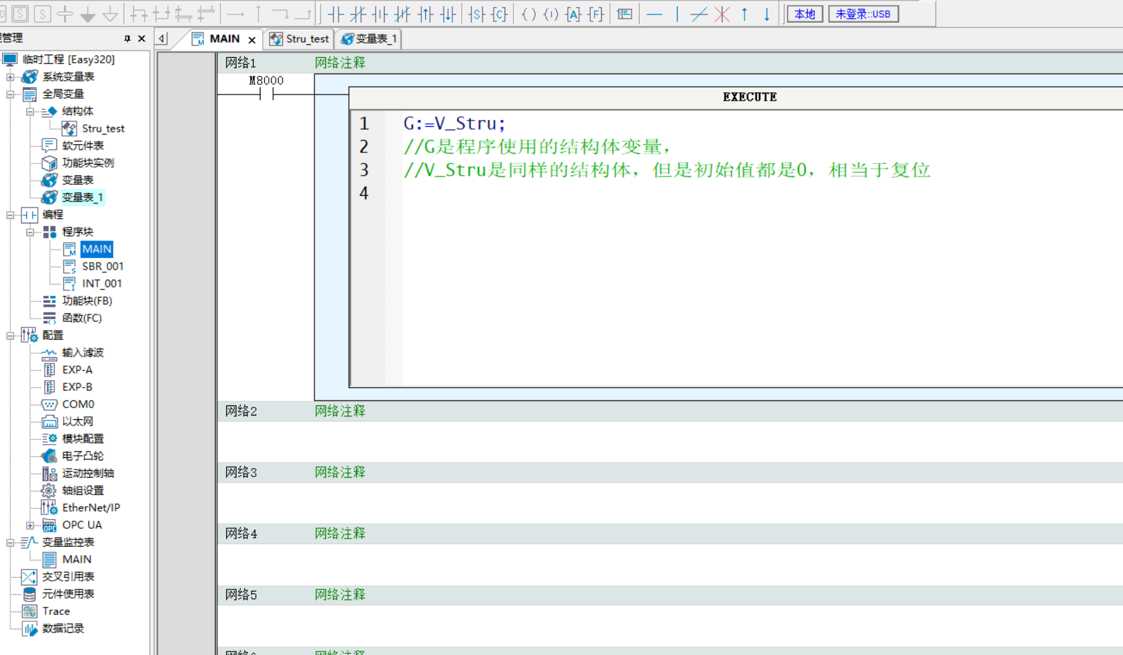 请教各位大佬,汇川EASY结构体,比如定义了 电机1.启动、电机2.启动、电机3.启动、电机4.启动、电机5.启动、........,类型是bool,我如果要批量复位的话,该如何写?我用了ZRST 指令,好像不能全部复位